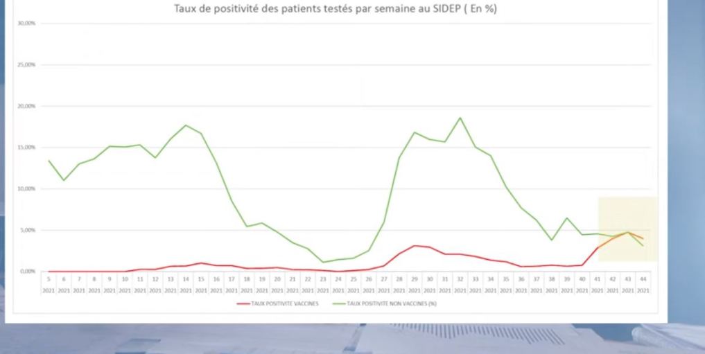 O καθηγητής Λοιμωξιολογίας Didier Raoult, Διευθυντής στο IHU Méditerranée Infection στο εβδομαδιαίο βίντεο επιστημονικής ενημέρωσης στις 9 Νοέμβρη μεταξύ άλλων αναφέρει: τα ποσοστά θετικότητας των εμβολιασμένων και των ανεμβολίαστων είναι ίσα τώρα! Δεν μπορώ να ξέρω γιατί συμβαίνει αυτό ίσως γιατί η διάρκεια της αποτελεσματικότητα των εμβολίων είναι πιο σύντομη….( η αναφορά είναι περί το 25: στο βίντεο)