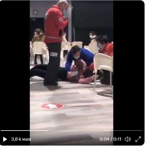 Σκηνή σοκ σε εμβολιακό κέντρο της Ευρώπης. Φοβερή όπως φαίνεται επιληπτική κρίση σε νεαρή γυναίκα αμέσως μετά τον εμβολιασμό με το πειραματικό σκεύασμα που θέλουν να κάνουν υποχρεωτικό. Σπαρταράει χτυπιέται στο έδαφος και οι υγειονομικοί επιχειρούν αν κι αμήχανα να την συνεφέρουν. Άγνωστες οι λεπτομέρειες κι αυτού του δράματος…