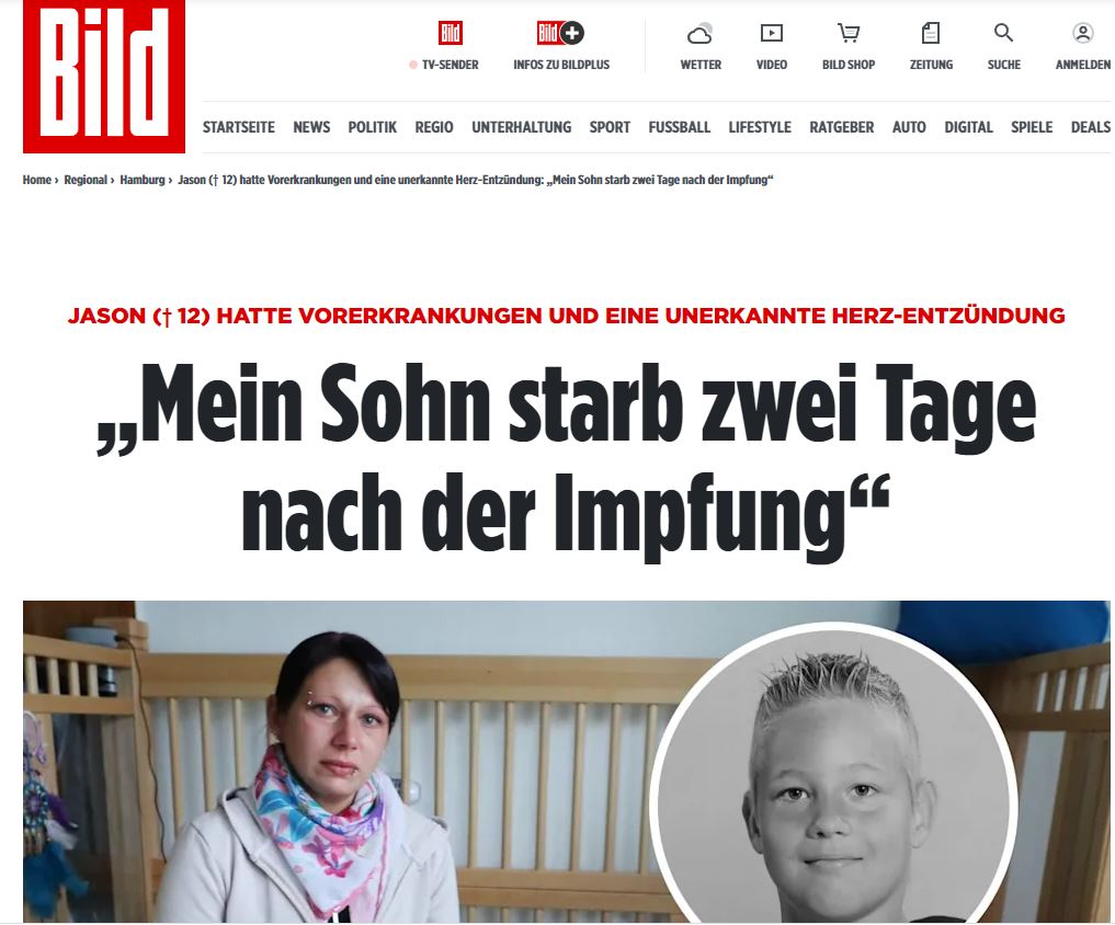 «Ο γιος μου πέθανε δύο μέρες μετά τον εμβολιασμό» Τίτλος της Γερμανικής Bild.