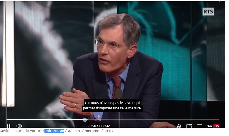 Πρέπει απολύτως ν’ αλλάξουμε στρατηγική και σε καμιά περίπτωση να μην αυξήσουμε την δοσολογία ενός φαρμάκου που δημιούργησε πολλές βλάβες ως τώρα. Μια αποδυναμωμένη κοινωνία δεν έχει τα μέσα να ελέγξει μια κρίση. Πρέπει να σταματήσουμε να αποδυναμώνουμε την κοινωνία με μέτρα καταναγκαστικά. Tα μέτρα υποτίμησαν το μέτρο. Αμφισβητούνται γιατί προκάλεσαν βλάβες στην κοινωνία και δεν βγήκαμε κι από την κρίση. Κάθε φορά ακούμε ότι πρέπει να αυξήσουμε τον γύρο εμβολιασμών. Πολλοί επιστήμονες και φιλόσοφοι ισχυρίζονται ότι υπάρχουν καλοί λόγοι να είμαστε σκεπτικιστές στον εμβολιασμό Covid: l’heure de vérité?rts.ch
