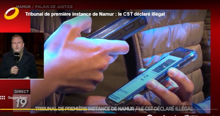 Το πρωτοβάθμιο δικαστήριο της Namur έκρινε με συνοπτική διαδικασία παράνομο το Covid Safe Ticket (CST) στη Βαλονία, ανακοίνωσε την Τρίτη η Ένωση για την υπεράσπιση των θεμελιωδών δικαιωμάτων και ελευθεριών «Το δικαίωμά μας», που ήταν στη ρίζα της κίνησης.