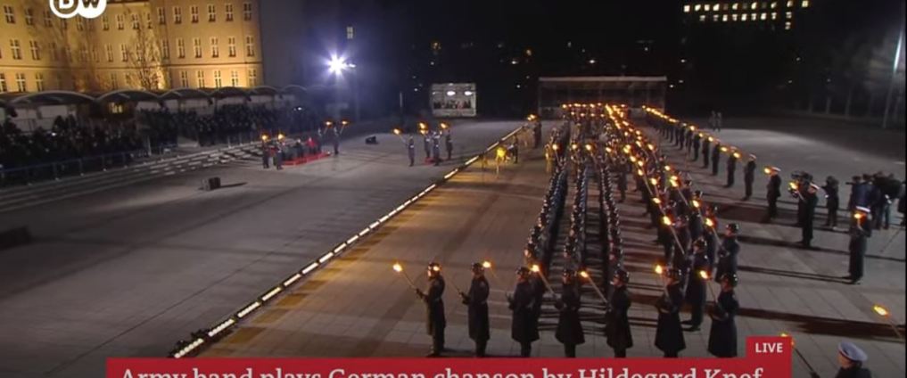 Σε τελετή που πραγματοποιήθηκε υπό το φως των πυρσών, η Bundeswehr, οι ομοσπονδιακές ένοπλες δυνάμεις της Γερμανίας, αποχαιρέτησαν την καγκελάριο Άνγκελα Μέρκελ.