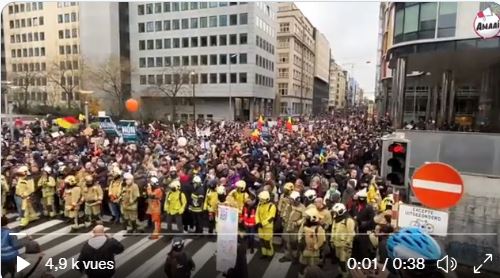 Η υγειονομική χούντα θέλει να κρατήσει για πάντα οι λαοί ως είναι επόμενο διαφωνούν κι αντιστέκονται. Δακρυγόνα λιθοβολισμός σπασμένα τζάμια από οχήματα της αστυνομίας δακρυγόνα αντλίες νερού χειροβομβίδες κρότου λάμψης . Στην κορυφή πορείας οι Πυροσβέστες… η πορεία κατευθύνθηκε από gare du nord προς το parc du Cinquantenaire όπου οι ”θεσμοί ”.Βίαιη καταστολή κατά του λαού…