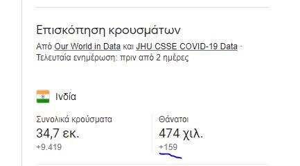 Επίσης η Κίνα με 2 δις πληθυσμό έχει σχεδόν μηδενικούς θανάτους έχει λήξει την επιδημία εδώ και καιρό με το κινέζικο εμβόλιο το μόνο κανονικό εμβόλιο με την κλασική έννοια του όρου. Εμβόλιο που η Ελλάδα λόγω ΕΕ μονοπωλίων στέρησε από πληθυσμό της.