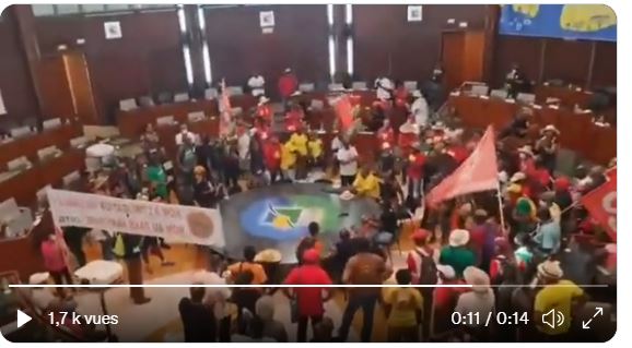 Οι διαδηλωτές εισέβαλαν στο ημικύκλιο του Περιφερειακού Συμβουλίου της Γουαδελούπης στο Basse-Terre την Πέμπτη, σπάζοντας τζάμια και άλλα αντικείμενα, σύμφωνα με το AFP στο Περιφερειακό Συμβούλιο. «Η συλλογικότητα έσπασε την πύλη εισόδου και την πόρτα της αίθουσας υποδοχής και μπήκαν στο ημικύκλιο ενώ τελείωνε η ολομέλεια», σύμφωνα με περιφερειακό υπεύθυνο επικοινωνίας. Πρόσθεσε ότι οι εκλεγμένοι «πρόλαβαν να εγκαταλείψουν το χώρο» και ότι ο Έπαρχος, Άρι Χαλούς «κλειδώθηκε στο γραφείο του». Σύμφωνα με εικόνες που μετέδωσε το τοπικό κανάλι Guadeloupe la 1ère, οι διαδηλωτές εισέβαλαν τραγουδώντας. «Όχι στον υποχρεωτικό εμβολιασμό! Όχι στο υγειονομικό πάσο (QR)», όπως θα μπορούσε να διαβάσει κανείς σε ένα πανό.Οι διαδηλωτές κατέλαβαν το ημικύκλιο εναλλάσσοντας συνθήματα που ακούγονταν με δύναμη και τραγούδια διαμαρτυρίας.Σύμφωνα με το AFP η συλλογικότητα έσπασε την πύλη εισόδου του κοινοβουλίου αλλά και την πόρτα του χολ υποδοχής και οι διαδηλωτές εισέβαλαν στο κοινοβούλιο καθώς ολοκλήρωνε μια συνεδρίαση.