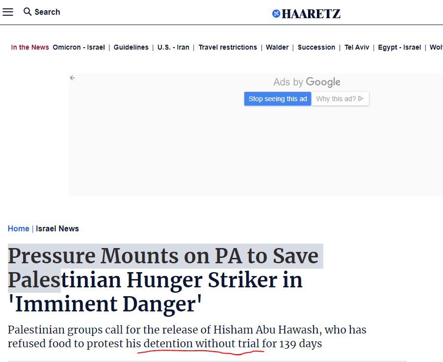 Ο Hicham Abu Hawash, ένας 40χρονος μέλος της παλαιστινιακής ένοπλης ομάδας Ισλαμικής Τζιχάντ πτέρυγα της αλ Φατάχ, ο οποίος θεωρείται ύποπτος από το Ισραήλ ότι συνδέεται με επιθέσεις στο εβραϊκό κράτος, ξεκίνησε την απεργία πείνας του τον Αύγουστο για να διαμαρτυρηθεί για την κράτησή του χωρίς κατηγορία ή δίκη.