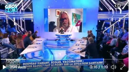 Καθηγητής Λοιμωξιολόγος Didier Raoult στην εκπομπή ”Touche pas à mon poste” του Cyril Ηanouna στο κανάλι C8TV στην ερώτηση ανο εμβολιασμός χρησιμεύει σε κάτι απαντά ΟΧΙ. Και προσθέτει ”δεν υπάρχουν ενδείξεις ότι οι ανεμβολίαστοι είναι πιο μολυσματικοί μεταδοτικοί παρά οι εμβολιασμένοι..για τη Δέλτα οι εμβολιασμένοι είχαν ιικά φορτία ανώτερα από τους ανεμβολίαστους”.
