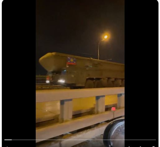 Αυτό, καθώς βιντεοσκοπούνται εκτοξευτές ICBM με θερμοπυρηνικά όπλα “Yars” να οδηγούνται κατά μήκος του περιφερειακού δρόμου έξω από τη Μόσχα. Για διηπειρωτικούς βαλλιστικούς πυραύλους “Topol-M” κάνουν λόγο ρώσικα μίντια που μετακινούνται πέριξ της Μόσχας.