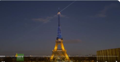 Στο πλαίσιο αυτό ο Πύργος του Άιφελ ντύθηκε στα χρώματα Ουκρανίας ως συμβολική ”πράξη υποστήριξης στον ουκρανικό πληθυσμό”. Θα είναι έτσι φωτισμένος για 3 μέρες από τις 18h – 00.30h.