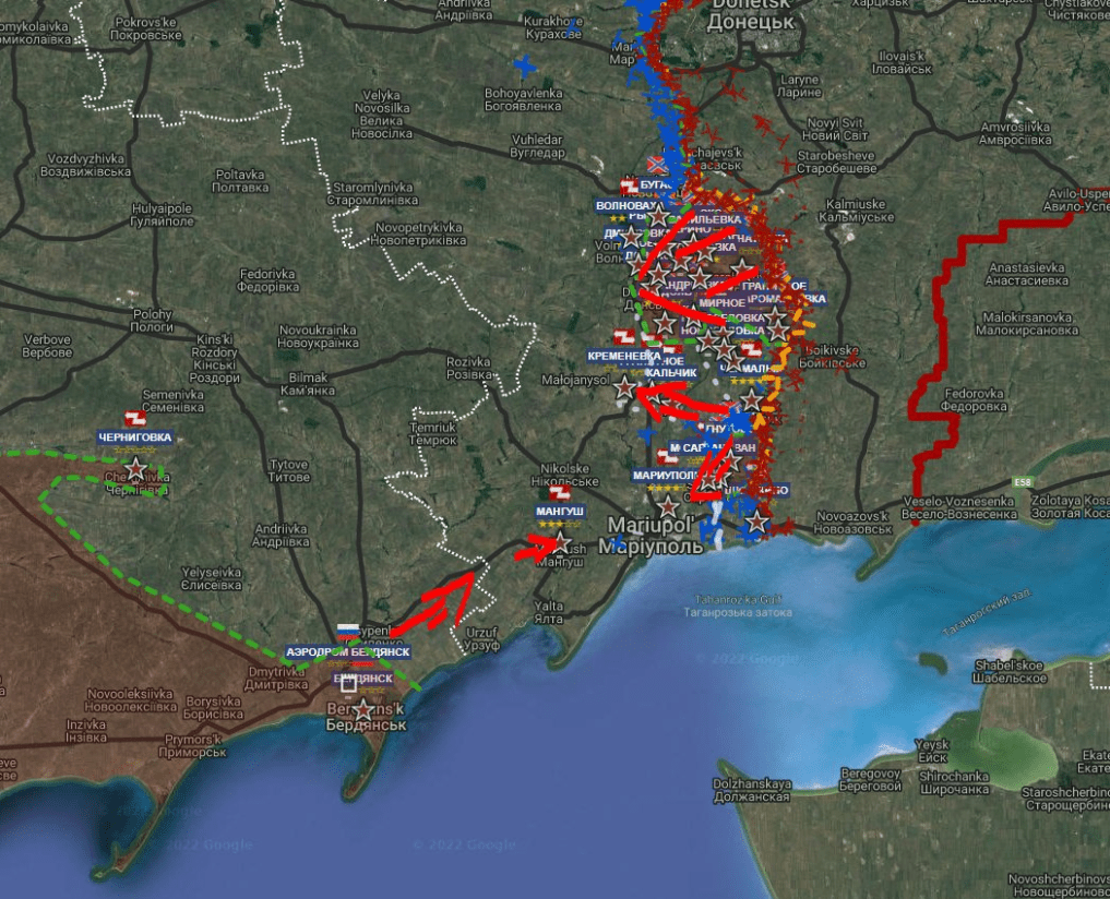 Το μεγαλύτερο μέρος του ουκρανικού στρατού ”αιχμαλωτίστηκε” σε 2 παγίδες σε Marioupol και Kramatorsk.Αυτό ιευκολύνει την πτώση Κιέβου. Αυτή ήταν και η αρχική στρατηγική. Κίεβο ο νο 1 στόχος επιχείρησης όπως ορίστηκε από Πούτιν.
