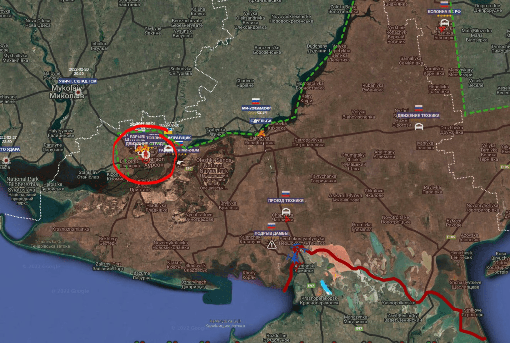 O ρώσικος στρατός μπήκε στην πόλη Χερσώνα.. ενώ πολυπληθείς δυνάμεις Ρώσων είναι προ των πυλών του Κιέβου αρχικό στρατηγικό στόχο της επιχείρησης. Οι Ρώσοι Πεζοναύτες της 74ης Μονάδας κατέλαβαν και το αεροδρόμιο της Χερσώνας στη Νότια Ουκρανία.