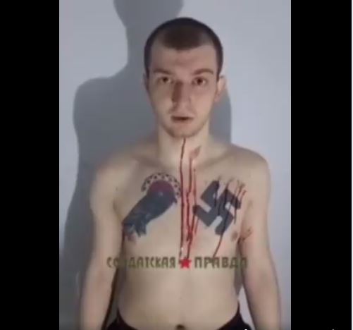 Αυτούς εξοπλίζει η Δύση. Νεοναζιστές με στάμπα τη σβάστικα μισό μέτρο στο μέρος της καρδιάς. Αιχμάλωτος ναζιστής των τιμωρητικών Ταγμάτων Θανάτου του Κιέβου. Τα καρναβάλια των Αζοφιστών είναι πτέρυγα ενταγμένη στον τακτικό στρατό της τ. Ουκρανίας.