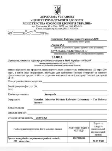 Μεταφορά βιοϋλικών από εργαστήρια της Ουκρανίας στην Αυστραλία και τη Γερμανία.