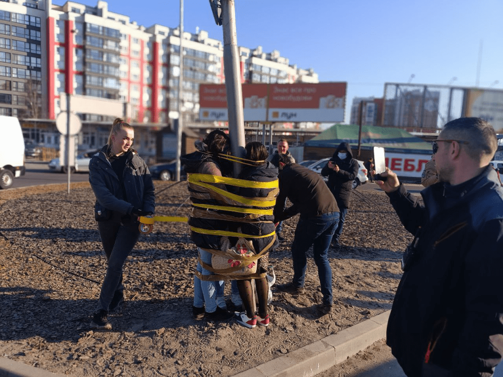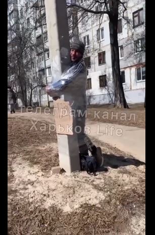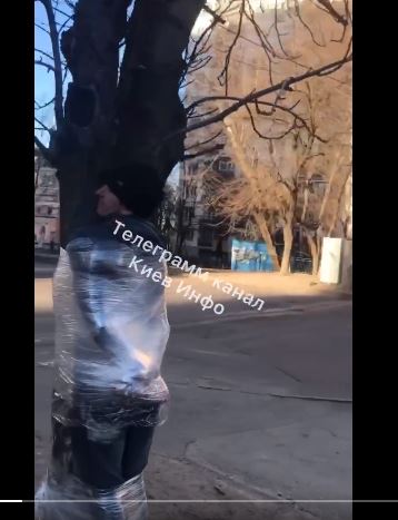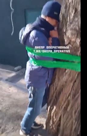 Όντως το έκαναν .. Χαλέπι αλλά οι Ουκροναζί τζιχαντιστές. Δημόσιο μαστίγωμα στο πρόσωπο ατόμου δεμένου σε στύλο από δήμιο που φέρει παραστρατιωτική στολή και κλασικό μαύρο κασκετάκι. Παρακολουθούν περαστικοί. Η σκηνή διαδραματίζεται στη λεωφόρο Γκαγκάριν στο Krivoy Rog.Το θύμα καταρρέει…