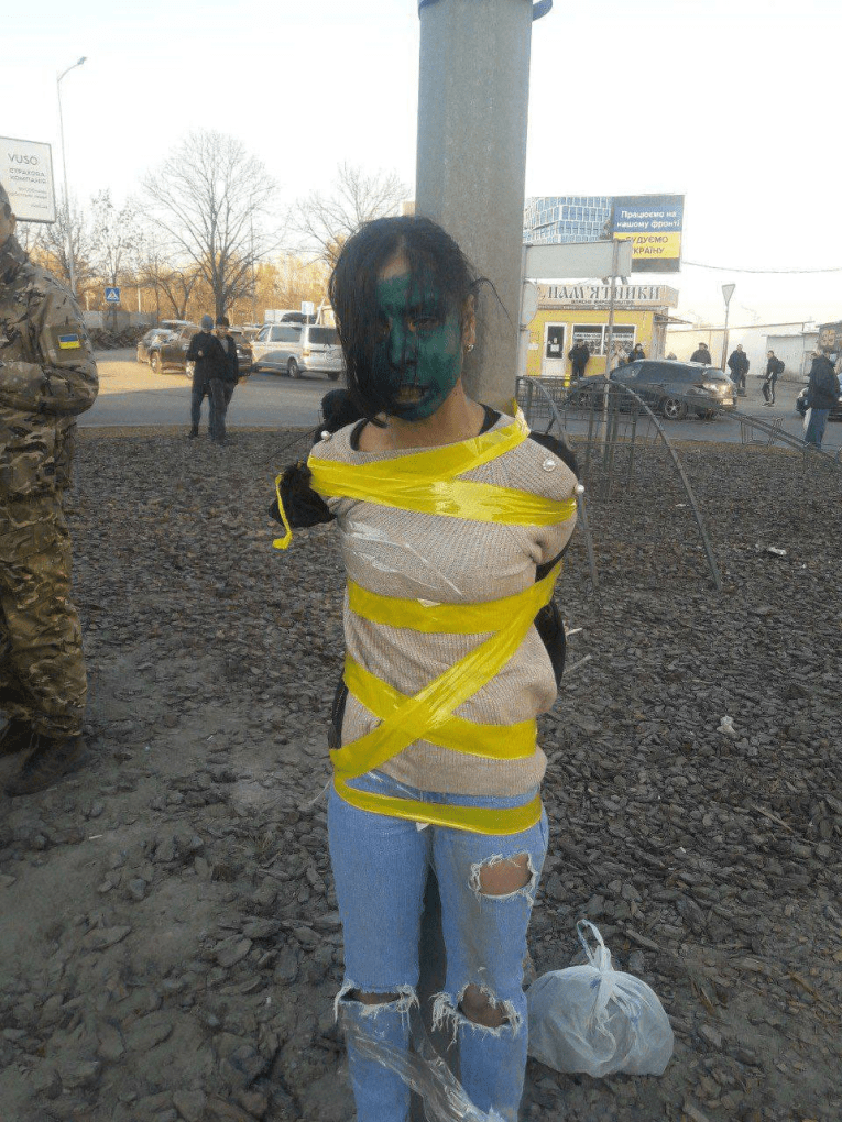 3 κοπέλες Ρομά δεμένες βασανίζονται από παραστρατιωτικούς κατσαπλιάδες στο Λβιβ. Έφτασαν εκεί ως πρόσφυγες από Κίεβο! Γενοκτονούν τσιγγάνους σύμφωνα με τις επιταγές των προγόνων τους από τη μεραρχία SS “Γαλικία”. Ακριβώς όπως οι ναζί. Στρατόπεδο συγκέντρωσης η τ. Ουκρανία. Νταχάου…λίγο πιο εκεί..