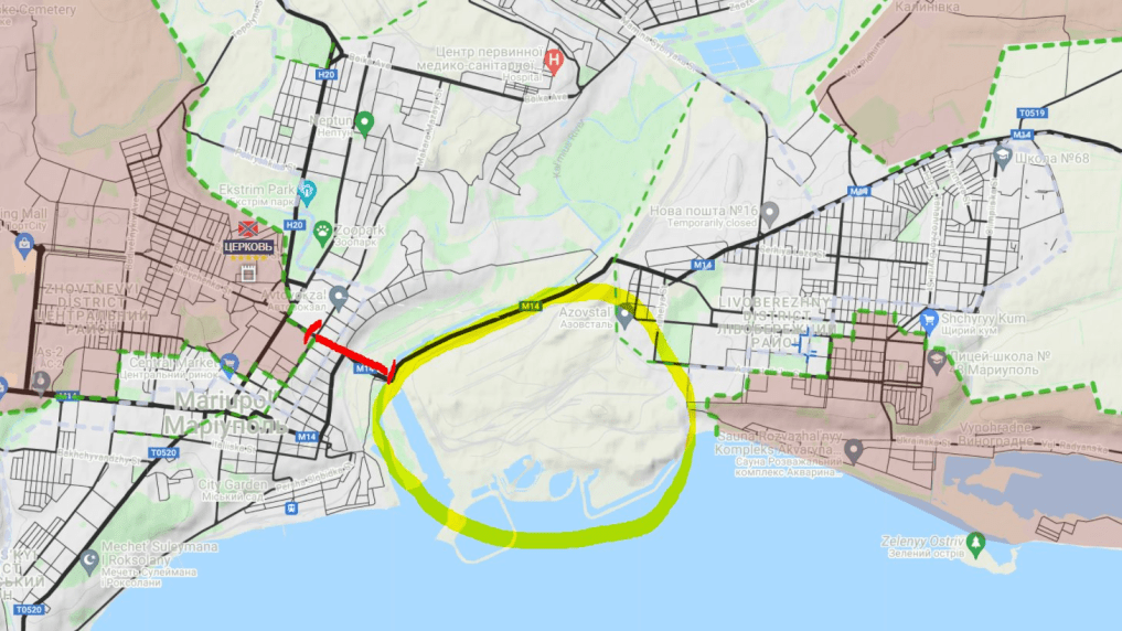 Σήμερα ή αύριο θα σχηματιστούν δύο θύλακες στην πόλη, μετά οι Ουκρανοί εθνικιστές θα οδηγηθούν στο εργοστάσιο και δεν θα υπάρχουν επιλογές παράδοσης.1000 μέτρα και η Μαριούπολη κόβεται στη μέση – και η ΒΔ γέφυρα (μόνο πέρασμα προς το κέντρο της Αζοφικής Χάλυβας από αυτήν την κατεύθυνση) θα παρθεί.Τουλάχιστον πριν από 2,5 ώρες, Τσετσενικές μονάδες Oμοσπονδίας Ρωσίας είχαν μετακινηθεί βορειότερα προς το Gusi Prodzhekt. Επίκειται πλέον η διάσπαση της πόλης σε δύο μέρη και η αντίστοιχη περικύκλωση Αζοφιστών.