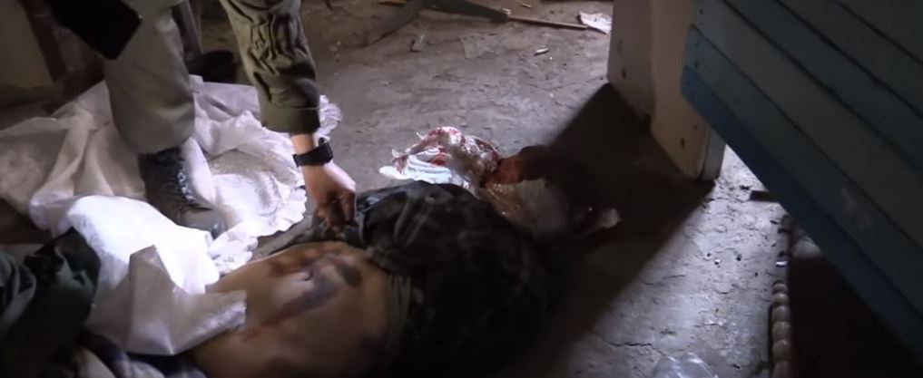 Στη Μαριούπολη, στην εγκαταλελειμμένη βάση των Ενόπλων Δυνάμεων της Ουκρανίας και του Αζόφ, στο σχολείο, το πτώμα ενός κοριτσιού με μια σβάστικα χαραγμένη στο στομάχι του. Βρέθηκαν οι στρατιωτικέ φόρμες τους αφού τις άλλαξαν με πολιτικά ρούχα για να διαφύγουν ως πολίτες. Από αυτές αποδεικνύεται πως ήταν βάση Εθνικής Φρουράς Ουκρανίας και του Τάγματος Αζόφ. Εντοπίστηκαν πτώματα πολιτών που υποστήριζαν την DPR μια κοπέλα δολοφονημένη που έχει υποστεί βασανιστήρια και της έχουν χαράξει τη σβάστικα. H κοπέλα είναι αιμόφυρτη σε λίμνη αίματος. Δεν ξέρουμε ποιός το έκανε πάντως ή Αζόφ ή Εθνοφρουροί αναφέρουν οι στρατιώτες του DPR. Η σβάστικα είναι εγκαυματικής μορφής συν χάραγμα.. Έγκλημα πολέμου..Αυτοψία στον τόπο ενός ειδεχθούς εγκλήματος.Γυναικοκτονία-γενοκτονία με κίνητρο εθνοκάθαρσης