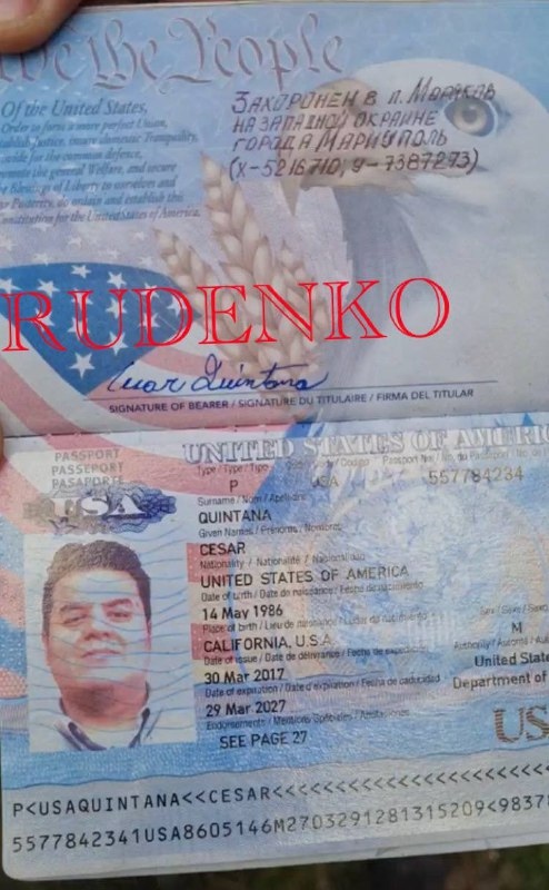 Ένας ακόμη Αμερικανός μισθοφόρος σκοτώθηκε στη Μαριούπολη. Τι γυρεύουν οι Αμερικανοί στα ρώσικα σύνορα; Πρόκειται για τον Quintana Cesar από την Καλιφόρνια με ημερομηνία γέννησης 14 Μαίου 1986..Στα τείχη της Μόσχας πέφτουν τα κουφάρια των ΝΑΤΟικών επίδοξων εκπορθητών της με ποδηγέτη και πάλι το ναζισμό!