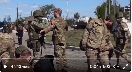 Η μάχη του Azovstal έληξε. 265 μαχητές παραδόθηκαν στο ρώσικο στρατό εκ των οποίων 51 σοβαρά τραυματίες. Πάνω από 200 πτώματα εντοπίστηκαν σε παγωμένη κατάσταση. Απελευθερώθηκαν 3 Ρώσοι αιχμάλωτοι (1 αξιωματικός, 2 στρατιώτες). Δεν πρόεκιται για εκκένωση αλλά για παράδοση κι αιχμαλωσία των Ουκρανών. Η μάχη της Μαριούπολης και τυπικά έκλεισα νικηφόρα για ρώσικες δυνάμεις. Ουκρανοί αιχμάλωτοι μαχητές μεταφέρθηκαν στη Ρωσία στη Yelenovka από το Azovstal. Περισσότερα από 10 ασθενοφόρα με τραυματίες μαχητές του Azov έφτασαν στο νοσοκομείο Novoazovsk. Τουλάχιστον επτά λεωφορεία με Ουκρανούς μαχητές που παραδόθηκαν αναχώρησαν από το Azovstal σύμφωνα με Reuters.