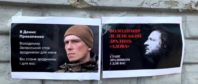 Στο Κίεβο κυκλοφόρησαν αφίσες και φυλλάδια που αναγράφουν: ”ο Ζελένσκι είναι ένας προδότης του Αζόφ. Θα προδώσει κι εσάς.”