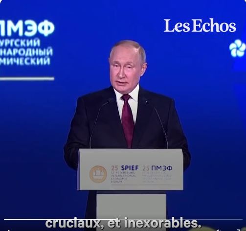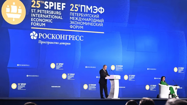. Ο Ρώσος πρόεδρος Βλαντιμίρ Πούτιν μίλησε στην ολομέλεια του 25ου Διεθνούς Οικονομικού Φόρουμ της Αγίας Πετρούπολης. Οι βασικές δηλώσεις του Ρώσου ηγέτη βρίσκονται στο υλικό του RIA Novosti.