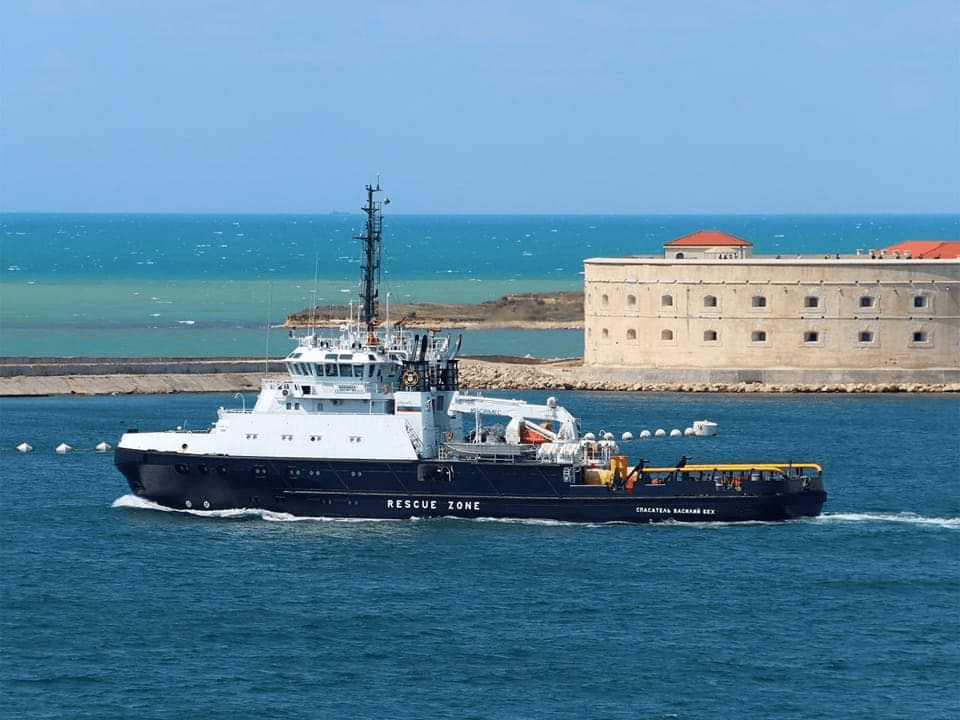 Παρεμπιπτόντως, αυτό δεν είναι απλώς ένα ρυμουλκό, αλλά ένας ναυαγοσωστικό με ένα καταδυτικό συγκρότημα και ένα υποβρύχιο όχημα, αναφέρει ο ίδιος λογαριασμός.