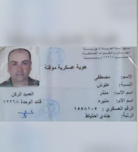 Ο Khalouf ήταν ο αξιωματικός μελετών ασφαλείας στο απόσπασμα της πόλης Shagara και κατάγεται από το χωριό Baarin στην περιοχή Masyaf της επαρχίας Hama, σύμφωνα με την ίδια πηγή.