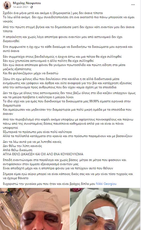 Η συγκλονιστική του ανάρτηση στο fb το δικό του Κατηγορώ στις 14/8/21: