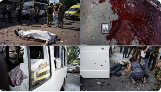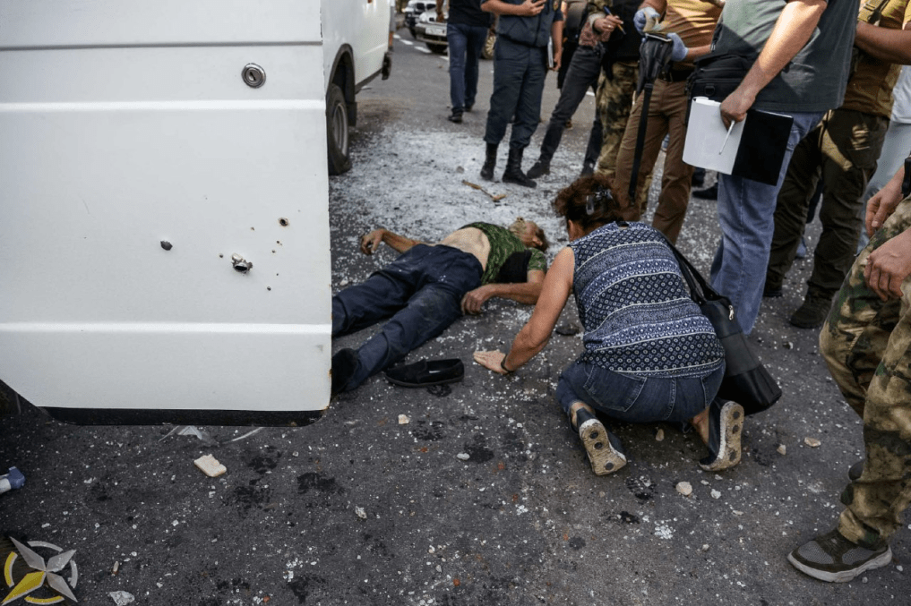 Νέο μακελειό στο Ντόνετσκ. Τυφλό χτύπημα ουκρανικών δυνάμεων σε σταθμό λεωφορείων που σημαίνει ήθελαν να έχουν πολλά θύματα από αμάχους. Κανονικοί τρομοκράτες, Τα ίδια έκαναν στη Συρία και οι τζιχαντιστές μάτωναν τα λεωφορεία. Το απόγευμα της 14ης Ιουλίου 2022, ο ουκρανικός στρατός βομβάρδισε το κέντρο του Ντόνετσκ με πυροβολικό 155 χιλιοστών μοντέλα του ΝΑΤΟ, σκοτώνοντας δύο πολίτες και τραυματίζοντας έξι. Αυτός ο νέος τρομοκρατικός βομβαρδισμός σε μια αμιγώς οικιστική περιοχή όπου δεν υπάρχουν στρατιωτικά αντικείμενα έλαβε χώρα καθώς οι συμμαχικές δυνάμεις προχωρούσαν προς Avdeyevka, Seversk και Soledar.