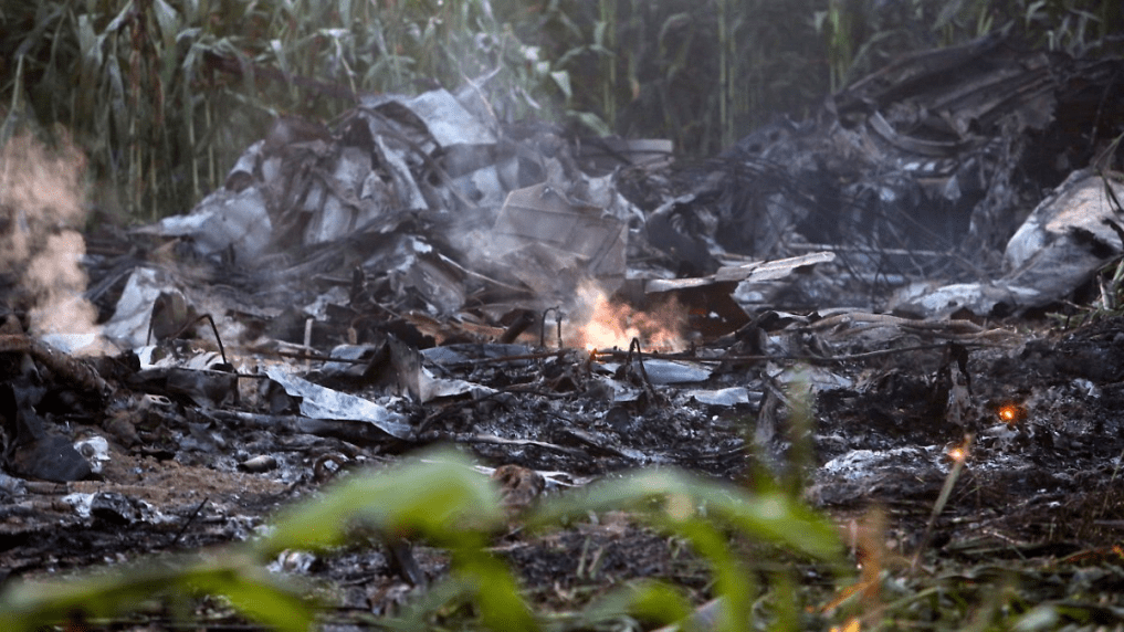 Tο αεροπλάνο έχει τυλιχθεί σχεδόν ολοκληρωτικά στις φλόγες, αν και ο πιλότος δεν ανέφερε φωτιά στο αεροπλάνο. Το πιο σημαντικό, ορισμένες πηγές σημειώνουν ότι υπήρξαν δύο κρότοι πριν από την πυρκαγιά, κάτι που δεν αποκλείει την πιθανότητα να εξεράγησαν πυρομαχικά επί του αεροσκάφους, και μετά το αεροπλάνο ανεφλέγη.