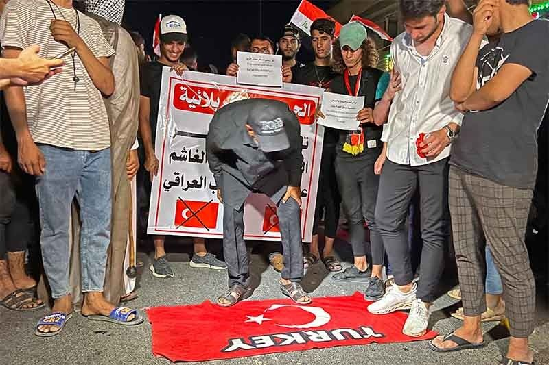 Η τουρκική σημαία κάηκε από διαδηλωτές έξω από ένα τουρκικό κέντρο βίζας στην ιρακινή πόλη Καρμπάλα, ενώ διαδηλώσεις πραγματοποιήθηκαν επίσης στη Βαγδάτη και τη Νασιρίγια, αναφέρει το BBC.Χιλιάδες άνθρωποι συγκεντρώθηκαν έξω από το κτίριο της πρώην τουρκικής πρεσβείας στο al-Waziriyah στο κέντρο της Βαγδάτης για να διαμαρτυρηθούν κατά του βομβαρδισμού της επαρχίας Dohuk.