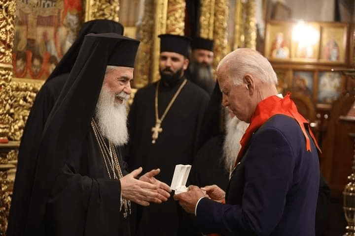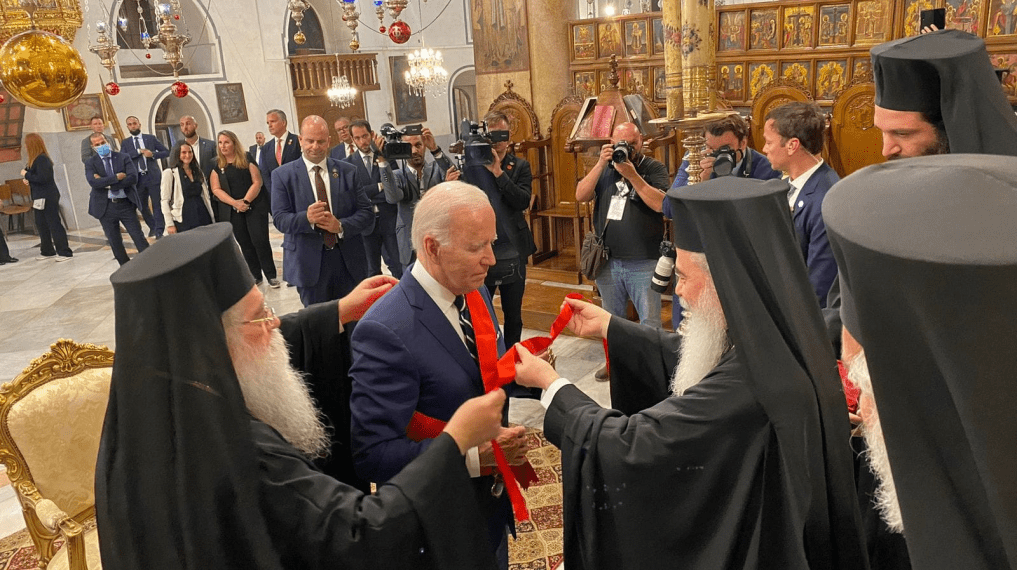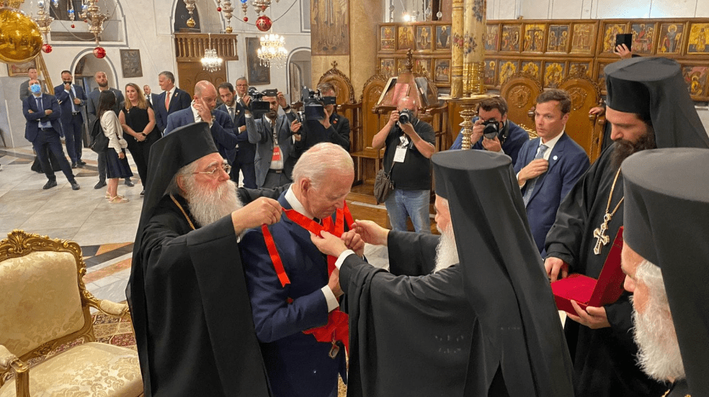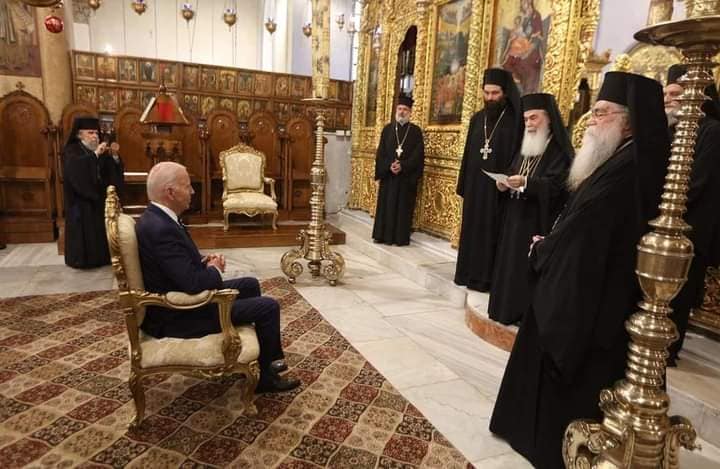 ΕΤΣΙ ΘΑ ΕΝΘΡΟΝΙΣΟΥΝ ΚΑΙ ΤΟΝ ΑΝΤΙΧΡΙΣΤΟ… Ο Μπάιντεν ο νο 1 εχθρός της Παγκόσμιας Ορθοδοξίας ένθρονος στους Αγίους Τόπους τον προσκύνησαν Πατριάρχης και παρατρεχάμενοι..! Τι παράσημα τι αστέρια τι τίτλους του έδωσαν ό,τι είχαν και δεν είχαν για το έργο του στην Ανθρωπότητα και την προσφορά του στην Ορθοδοξία…….Ιούλιος ο μήνας ο πνευματικού ολοκαυτώματος που να χτυπήσει κι ο Αύγουστος..