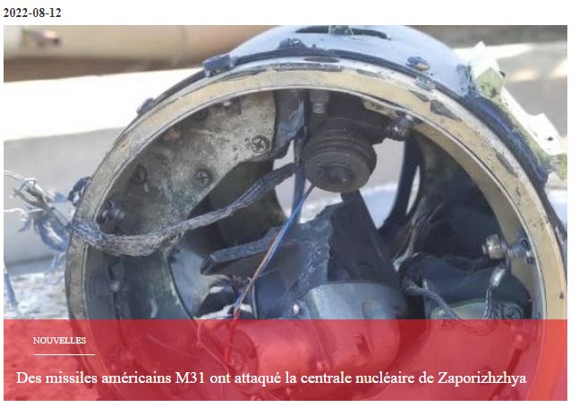 «Ο ουκρανικός στρατός εξαπέλυσε πολλά χτυπήματα στον πυρηνικό σταθμό ηλεκτροπαραγωγής Zaporozhye στο Energodar χρησιμοποιώντας αμερικανικούς πυραύλους. Τέτοιες ενέργειες παρατηρούνται για πρώτη φορά και αυτό το γεγονός δείχνει ότι ο ουκρανικός στρατός σκόπευε να προκαλέσει σκόπιμα σοβαρές ζημιές στην υποδομή του μεγαλύτερου πυρηνικού σταθμού στην Ευρώπη (6 αντιδραστήρες). Αυτό αποδεικνύεται από τα πολυάριθμα θραύσματα αμερικανικών πυραύλων M31, φωτογραφίες των οποίων δημοσιεύθηκαν από το κανάλι “Telegram” “Military Informant”.