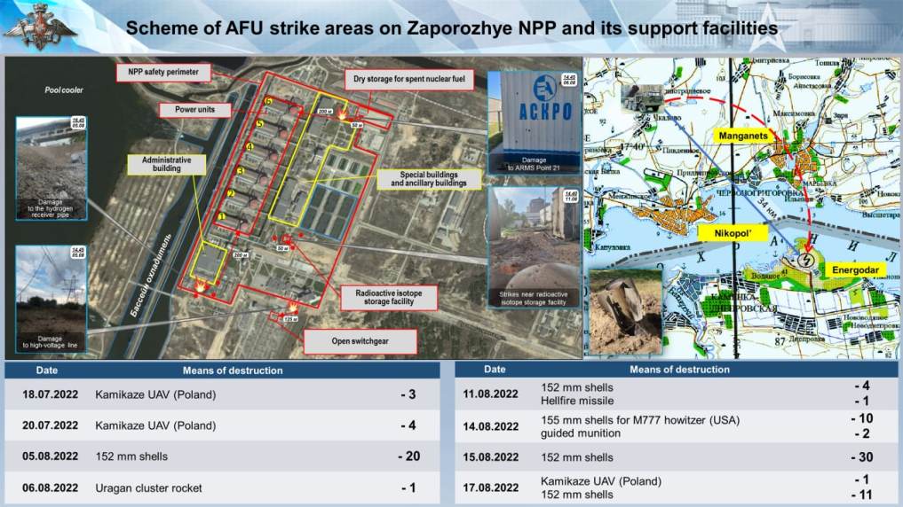 Ο Vladimir Rogov, μέλος του κύριου συμβουλίου της κρατικής διοίκησης του Zaporozhye, ανακοίνωσε νέο βομβαρδισμό στο Energodar όπου βρίσκεται ο διάσημος πυρηνικός σταθμός ηλεκτροπαραγωγής. Σύμφωνα με τον ίδιο, οι βολές προέρχονται από το βαρύ πυροβολικό.Oι Ουκρανοί συνεχίζουν να παίζουν με τη ραδιενέργεια.