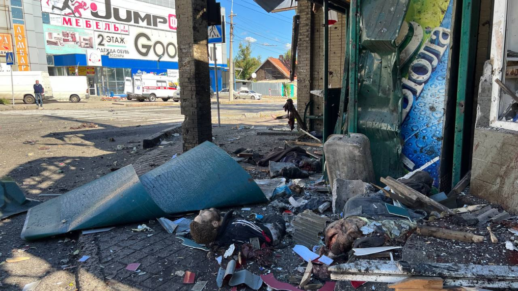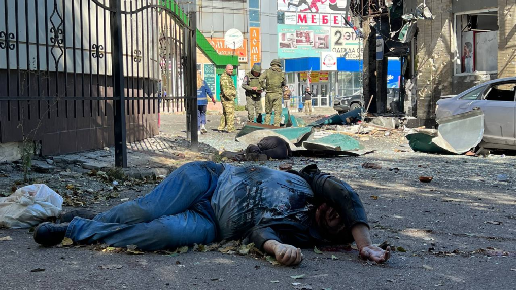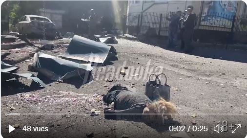 Ντόνετσκ τώρα, στον τόπο της σφαγής πριν από λίγες ώρες, όπου 13 πολίτες έχασαν τη ζωή τους από τις ουκρανικές βόμβες.σπίτι. Σε ακτίνα τουλάχιστον ενός χιλιομέτρου δεν υπάρχουν στρατώνες, αστυνομικά τμήματα, στρατιωτικά, διοικητικά κτίρια. Τίποτα άλλο από μαγαζιά, σούπερ μάρκετ, φαρμακεία, στάσεις λεωφορείων, νηπιαγωγεία και πολλούς ανθρώπους που παρ’ όλα αυτά προσπαθούν να ζήσουν μια φυσιολογική ζωή.