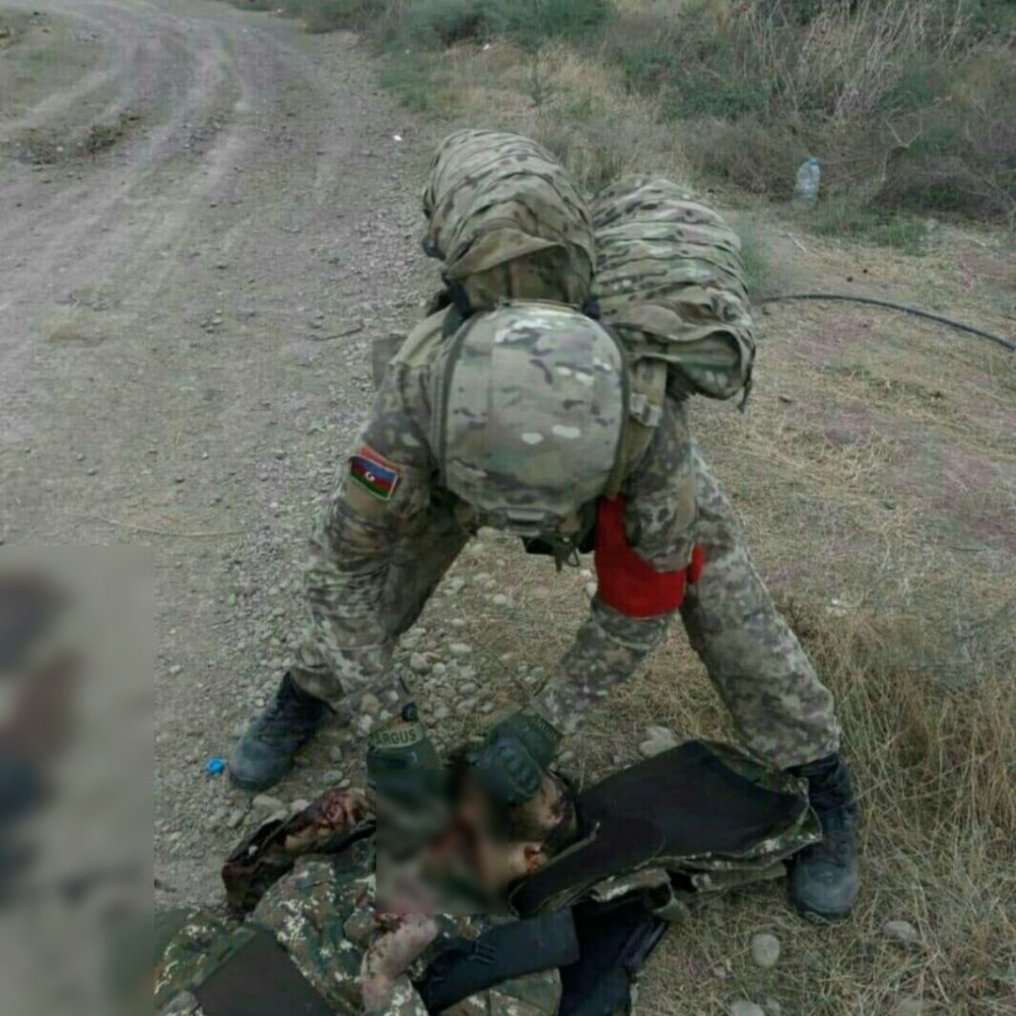 Έγκλημα πολέμου και κατά της ανθρωπότητας του Αζερμπαϊτζάν κατά Αρμένιων. Αποκεφαλισμός Αρμένιου στρατιώτη από Αζέρο στρατιώτη. H διεθνής κοινότητα συγκαλύπτει η ΕΕ ευελπιστεί ότι το αζέρικο αέριο θα καλύψει τις ελλείψεις του ρώσικου και συναλλάσσεται με το καθεστώς του Μπακού. Σκηνές που παραπέμπουν στη Γενοκτονία… Aπάνθρωπα εγκλήματα πολέμου που τελέστηκαν από το 2020 και εντεύθεν.
