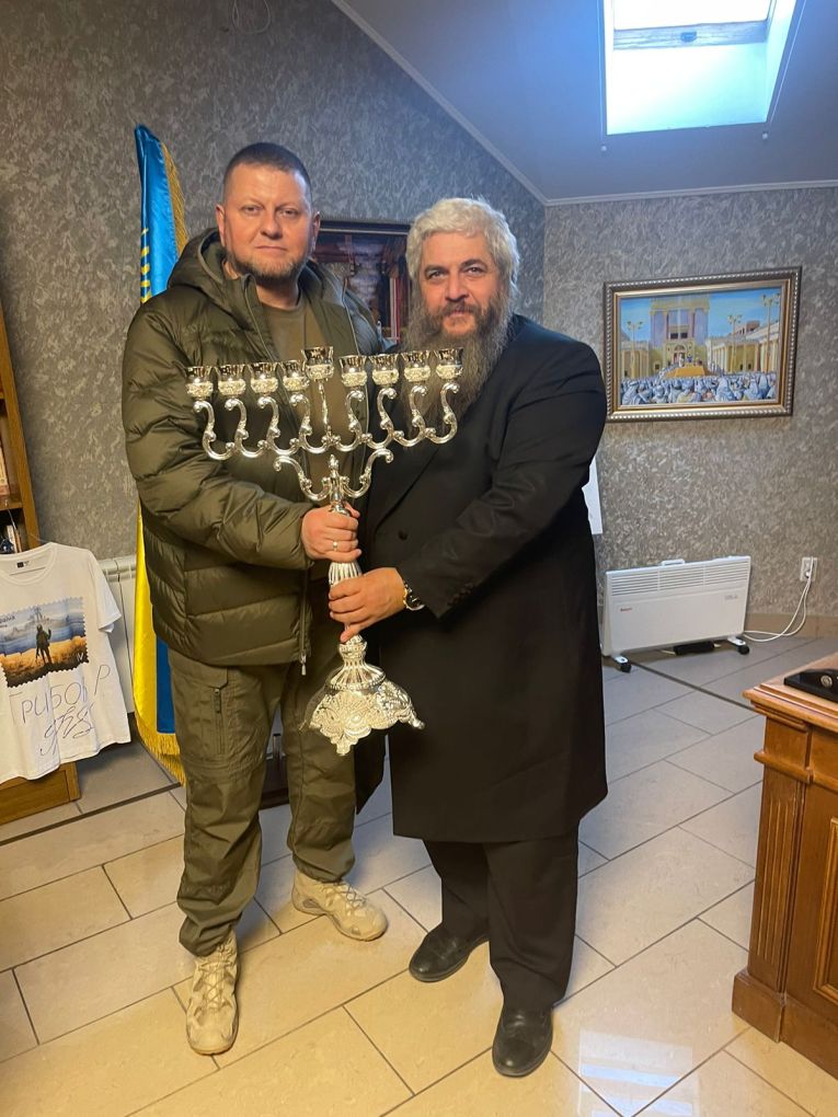 Με αφορμή τη Hanukkah ο αρχιραβίνος των Εβραίων της Ουκρανίας, Moshe Reuven Assman, προσφέρει μια μενορά στον διοικητή των ουκρανικών ενόπλων δυνάμεων.
