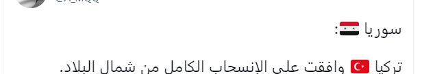 - Η Τουρκία συμφώνησε να αποσυρθεί πλήρως από τα συριακά εδάφη που κατέχει στο βορρά.
