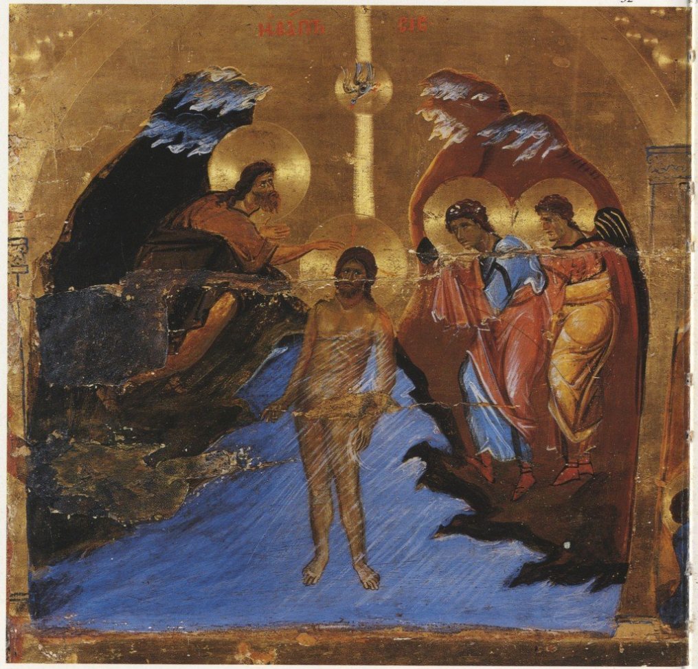 Σήμερα μεγάλη γιορτή μεγάλη Σύναξη από τα κελιά έρχονται οι κελιώτες, από τα σπήλαια οι σπηλαιώτες, από τ΄άστρα κατεβαίνουν οι ψυχές, κατηφορίζουν μαζί όλες οι αδελφότητες οι κοινότητες, συνέρχονται οι τάξεις των αγγέλων κι οι παρέες των παιδιών ξαμολιούνται παραβγαίνοντας να φέρουν το μήνυμα Κάτω στον Ιορδάνη τον ποταμό Βαπτίζεται ο Χριστός