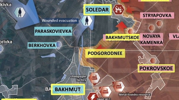 Το Soledar βρίσκεται κοντά στο Bakhmut, όπου επίσης διεξάγεται μια αιματηρή μάχη.Soledar, est situé à dix kilomètres au nord de Bakhmut/Artyomovsk. Jusqu’à Bakhmut une ville très importante