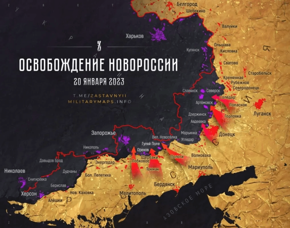 Φαίνεται ότι όλο το μέτωπο είναι πλέον ενεργό…και οι ρωσικές δυνάμεις επικεντρώνονται σε αυτή τη φάση να διασφαλίσουν τις 4 περιφέρειες του Ντονμπάς που προσαρτήθηκαν επίσημα στη Ρωσία. Αυτή του Λούγκανσκ είναι ελεύθερη, στο Ντόνετσκ σημειώνονται επιτυχίες αφού μετά το Σολεντάρ φαίνεται να σφίγγει κι άλλο ο κλοιός και η πολιορκία του Μπαχμούτ. Στην περιφέρεια της Ζαπορίζια ελευθερώθηκαν στο νότο οικισμοί και μένει η Χερσώνα που θα έχει πιθανώς ειδική διευθέτηση.