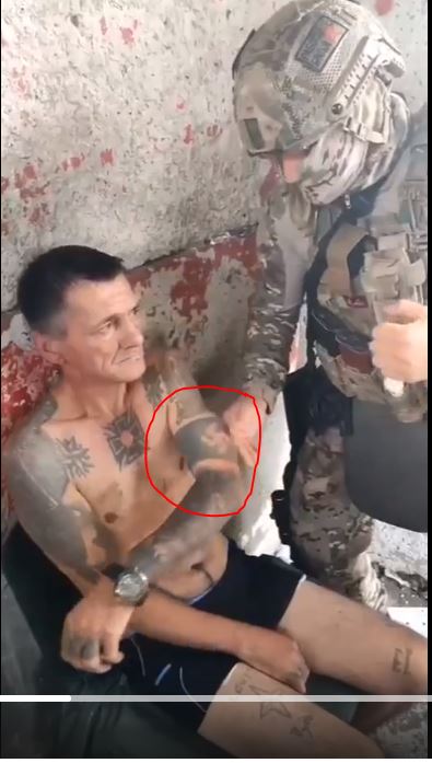 Ουκρανός στρατιώτης αιχμάλωτος των ρωσικών δυνάμεων φέρει πάνω του τη στάμπα του ναζισμού. Το κορμί του είναι διάστικτο από σύμβολα του ναζισμού με κορυφαίο τη σβάστικα που φέρει στο αριστερό χέρι. Αυτά είναι τα αποβράσματα οι βρικόλακες που ξύπνησαν από λήθαργο και διεκδικούν ρεβάνς από τη Ρωσία. Με αυτό το αφιόνι πολεμάνε….