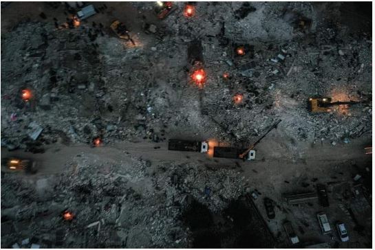 Ενδεικτική της καταστροφικής κατάστασης από τους πολύνεκρους σεισμούς στη Συρία αλλά και της επιδεικνυόμενης αλληλεγγύης και του αλτρουισμού είναι αυτή η φωτογραφία. Οικογένειες θυμάτων περιμένουν με πόνο κι αγωνία ένα νέο από τους παγιδευμένους δικούς τους κάτω από τα ερείπια. Χέρια παγωμένα σκάβουν τα ερείπια ελπίζοντας ότι θ΄ακούσουν τους αγαπημένους τους. κι ανάβουν φωτιές για να ζεσταθούν στα ερείπια με θερμοκρασίες κάτω από το 0 για ν΄αντέξουν να ψάχνουν.