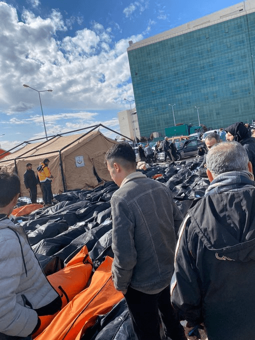 Στο νοσοκομείο της Αντιόχειας δεν υπάρχουν θέσεις για νεκρούς….Έξω είναι αραδιασμένοι κατά εκατοντάδες οι χιλιάδες είναι κάτω από τα ερείπια αγνοούμενοι.. η Τουρκία χτυπήθηκε από ακήρυχτο πόλεμο.. Ο Ερντογάν έβγαλε το στρατό για να επιβάλει την τάξη…Σε κατάσταση έκτακτης ανάγκης έχει κηρυχθεί η σεισμική ζώνη. Οι κυβερνήτες των επαρχιών μόλις απέκτησαν έκτακτες εξουσίες με εντολές για μαζική εκκένωση, απαγόρευση μετακίνησης, ορισμένα δικαιώματα και ελευθερίες θα περιοριστούν.