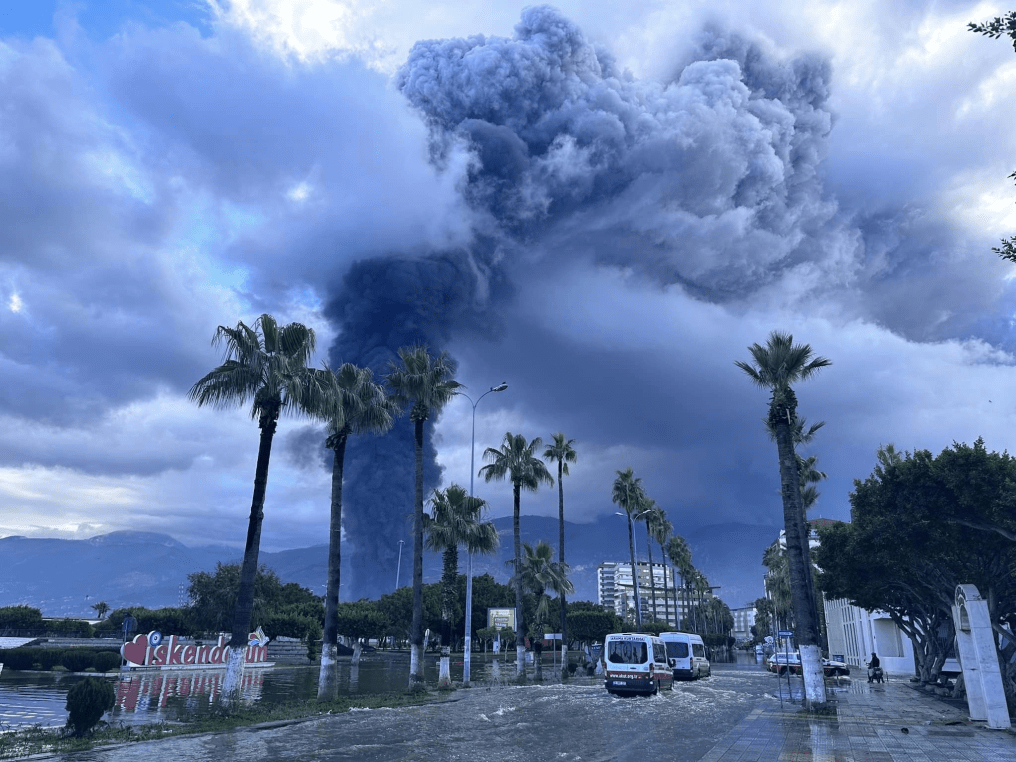 Ανέβηκε η στάθμη του νερού της θάλασσας στην Αλεξανδρέττα στο σημερινό Iskederum κανάλια οι δρόμοι η θάλασσα εισέβαλε στην πόλη πιο εκεί καιγόταν το λιμάνι από τα κοντέινερ που πήραν φωτιά κατά το σεισμό .