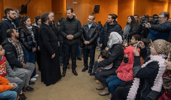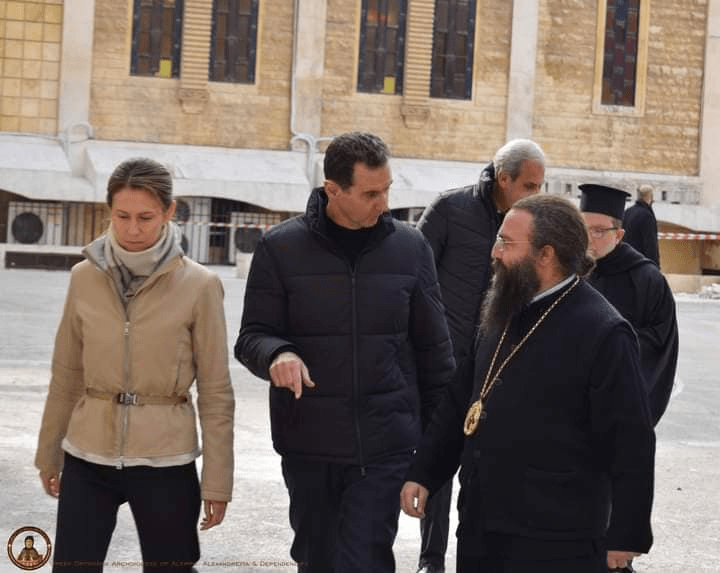 Ο Πρόεδρος της Συρίας Dr Μπασάρ αλ Άσσαντ κατά την επίσκεψή του χθες στο Χαλέπι πήγε μαζί με τη σύζυγό του Άσμα κα στον ελληνορθόδοξο καθεδρικό ναό Προφήτη Ηλία Χαλεπίου όπου συναντήθηκε με τον νυν επίσκοπο Χαλεπίου Εφραίμ Μααλουλί και άναψε κερί ενώ είχε την ευκαιρία να συνομιλήσει με πρόσφυγες του σεισμού που έχουν βρει καταφύγιο στις εγκαταστάσεις του ναού. Αυτός είναι ο μητροπολιτικός ναός Χαλεπίου όπου έδρασε ο αλησμόνητος Παύλος Γιαζίζι..Σήμερα το προεδρικό ζεύγος έκανε περιοδεία στις πληγείσες περιοχές της Λατάκια.