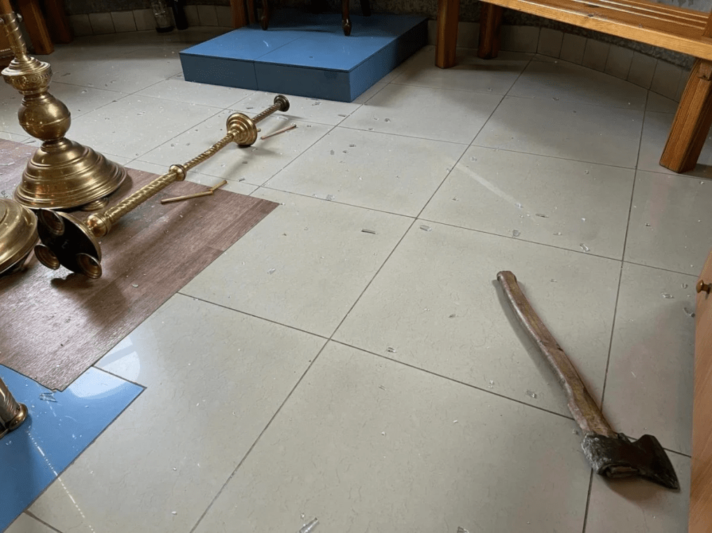 «Η πρόσκρουση ήταν τόσο δυνατή που πέρασε από τα διπλά τζάμια και κατέστρεψε το κηροπήγιο που ήταν μέσα. Έσπασαν και τις πόρτες και όλα τα τζάμια στο βαπτιστήριο, έσπασαν το παράθυρο στην τραπεζαρία, μέσα στην εκκλησία υπάρχουν παντού τζάμια και πέτρες. Δεν είναι η πρώτη φορά που τα τζάμια μας σπάνε και χαλάνε. Αλλά είναι άλλο να σπάσεις ένα παράθυρο και άλλο να σπάσεις τα πόδια του Σωτήρα… Αυτός που το έκανε δεν έχει ιερό και όσιο», αναφέρει το μήνυμα.