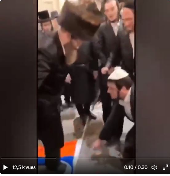 Φανατικοί σιωνιστές ποδοπατούν τη σημαία της Ρωσίας στήνουν χορό πάνω της και ανεμίζουν ουκρανικές σημαίες.. Είμαστε στο σωστό στρατόπεδο.. πόσο γρήγορα ξέχασαν τα στρατόπεδα συγκέντρωσης.. στο όνομα του πολιτικού τυχοδιωκτισμού