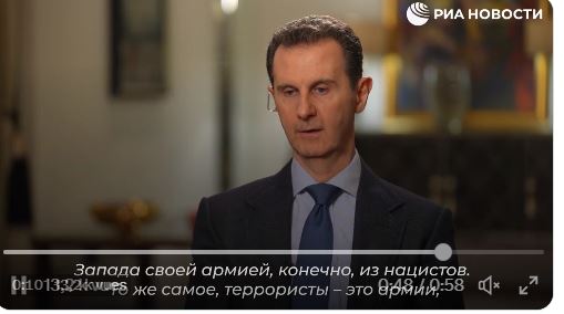 Ο Πρόεδρος Συρίας Bachar al-Assad, σε συνέντευξη του στο RIA δήλωσε πως η συλλογική Δύση κήρυξε τον Τρίτο Παγκόσμιο πόλεμο οδηγημένο από τα χέρια των ναζί της Ουκρανίας του Ζελένσκι. ”Πιστεύω ότι ο Τρίτος Παγκόσμιος Πόλεμος είναι σ’ εξέλιξη αλλά η μορφή του είναι διαφορετική. Η συλλογική Δύση ξεκίνησε τον Τρίτο Παγκόσμιο Πόλεμο, πολεμώντας δια των Ναζί στην Ουκρανία σε μορφή πολέμου με πληρεξούσιους όπως έκανε και με τρομοκράτες στη Συρία. Ωστόσο, τα σύγχρονα όπλα, ιδιαίτερα τα πυρηνικά, δεν επιτρέπουν να εξελιχθεί η αντιπαράθεση στην παραδοσιακή μορφή ενός παγκόσμιου πολέμου”, είπε ο Άσαντ. Η πλειοψηφία των Σύριων υποστηρίζει τη Ρωσία στη στρατιωτική επιχείρηση, γιατί μετά τη νίκη της Ρωσίας θα αναδυθεί ένας νέος κόσμος – πιο ασφαλής και πιο ειρηνικός τόνισε ο Άσαντ…