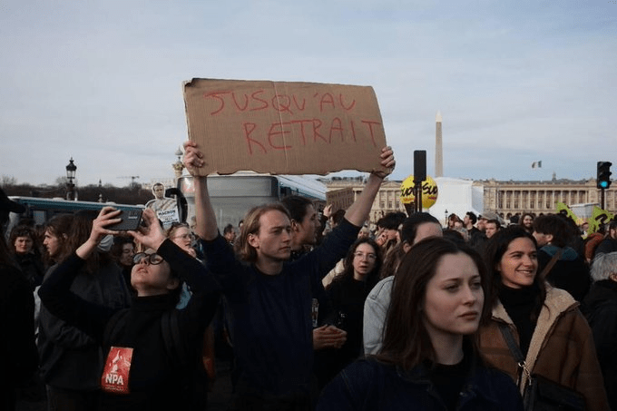 UPDATE Η Γαλλική Σύγκλητος ψήφισε το νόμο Μακρόν για μεταρρύθμιση συνταξιοδοτικού. Ο Μακρόν φοβήθηκε, τον κάνει νόμο του κράτους χωρίς να τον περάσει από Βουλή κάνοντας χρήση του άρθρου 49.3 του Συντάγματος! Λαϊκή Οργή. Αποσταθεροποίηση;O λαός πάει να ρίξει τη Βαστίλη!! όλοι στην Concorde ”’tous à la Concorde” είναι το σύνθημα που ακούγεται από παντού. Στόχος να συγκεντρωθεί 1.000.000 κόσμος απόψε. Διαδηλώσεις τώρα και σε Lyon, Bordeaux, Rouen και Dijon.. Τώρα που έχουν κρίση και οι Τράπεζες είναι μια καλή στιγμή να πέσει ο Τραπεζίτης των Ρότσιλντ.